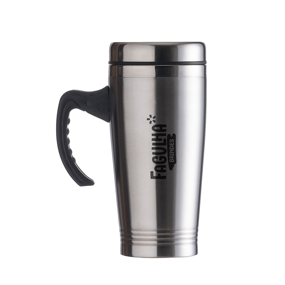 Caneca Inox 450ml com Pegador Plástico – Praticidade e Funcionalidade para sua Empresa