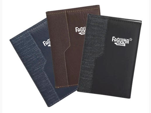 Agenda com capa em couro sintético, proporcionando um toque macio e elegante.