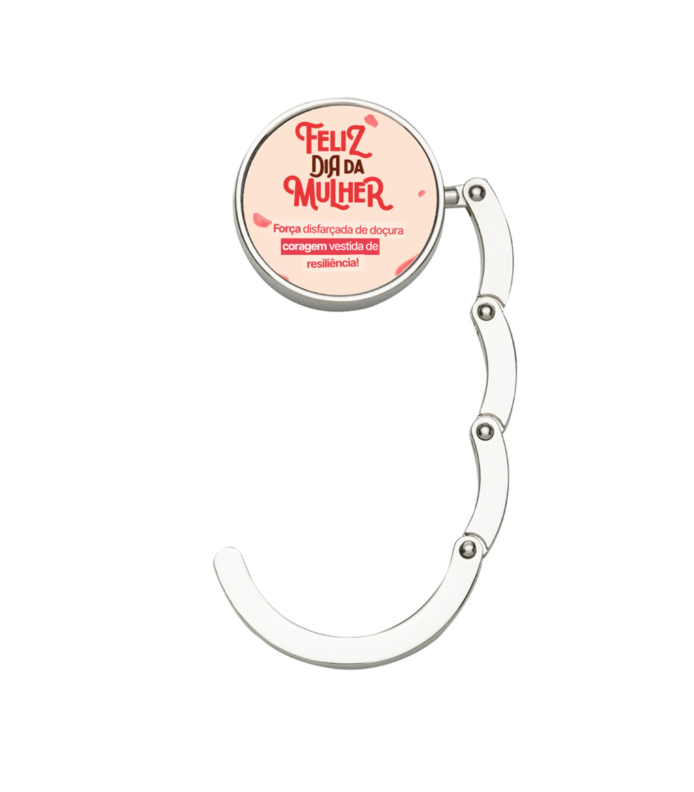 O Porta Bolsa Personalizado é um acessório prático e sofisticado, perfeito para presentear colaboradoras, clientes e parceiras. Produzido em metal resistente, ele possui chapa central redonda para gravação personalizada, permitindo aplicar uma frase especial e a logomarca da sua empresa.